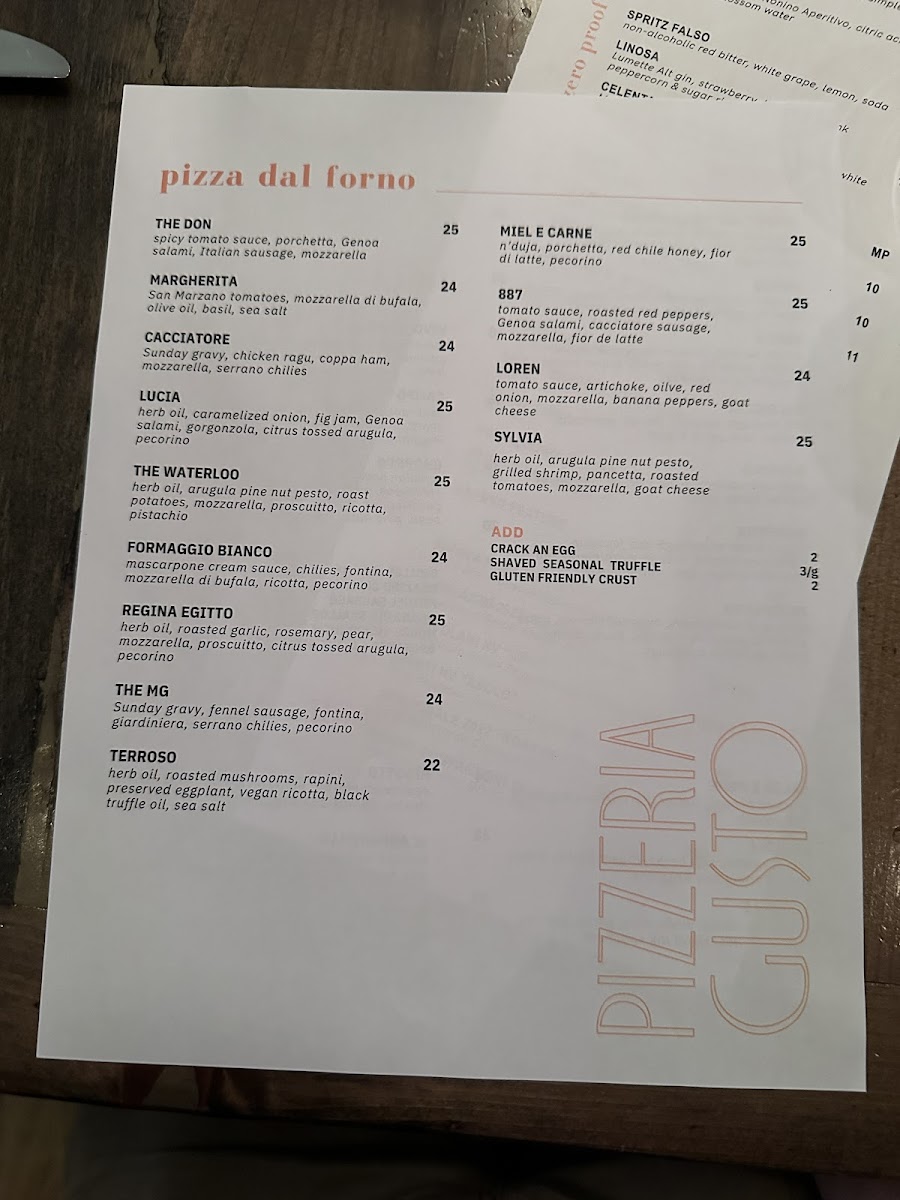Don't miss the handcrafted cocktails, which are highly praised, alongside their divine desserts. With friendly, attentive staff and a warm atmosphere, Pizzeria Gusto promises a memorable dining experience, inviting you to return again and again.